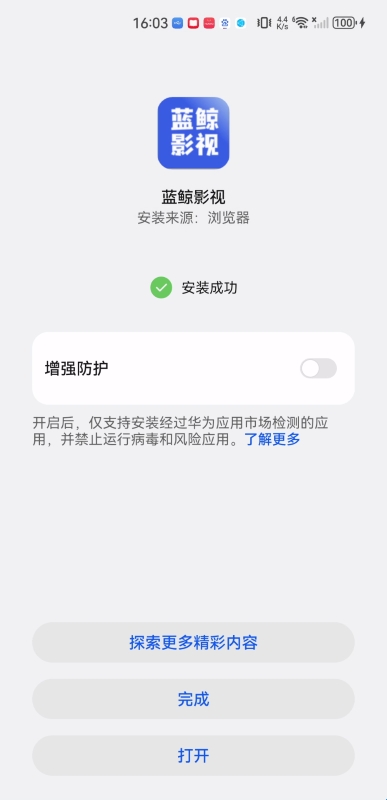 5.最后显示已经“安装成功”,点击下方打开按钮,即可体验精彩内容。