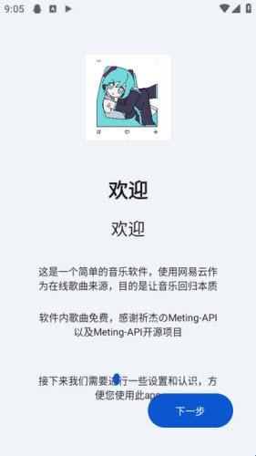 1.下载安装简音app,之后打开,按照引导点击【下一步】;