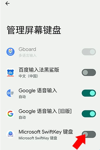 2、点击之后来到下方界面,找到并打开微软输入法后方的开关