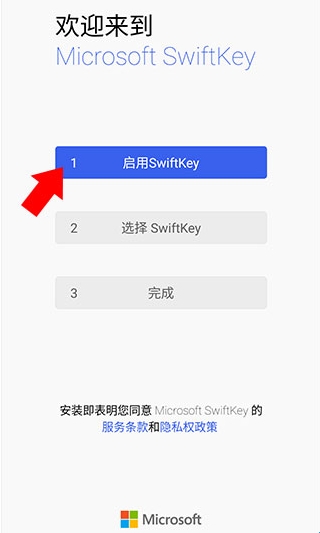 1、下载并打开微软输入法来到下方界面,点击第一步启用微软输入法