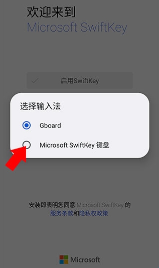 4、点击之后一般会出现下方弹窗,根据手机系统各有差异,不过仅需选择微软输入法即可