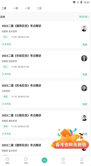 登陆后进入首页,为用户提供了海量的直播课,用户可以自由选择学习。