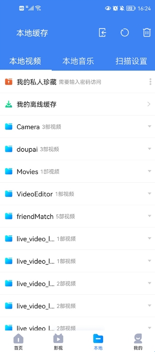 不管是本地视频还是本地音乐,都可以通过这里扫描出来,并且还提供了私人珍藏功能,懂得都懂。