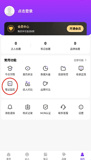 2、进入我的界面后点击笔记监控功能,然后填好相关信息参数即可。