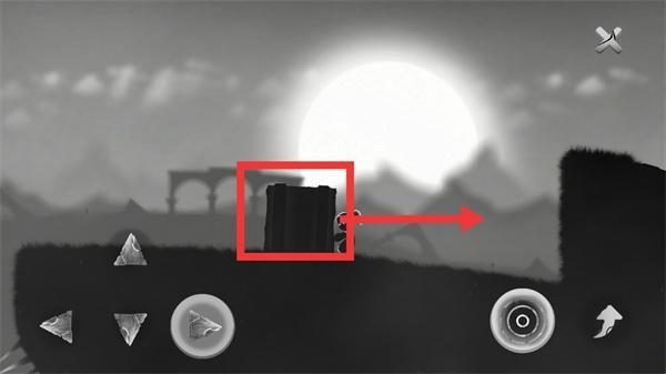 3、将正方体往右拉至坡边,踩在正方体上向右攀爬,翻过小坡,继续向右