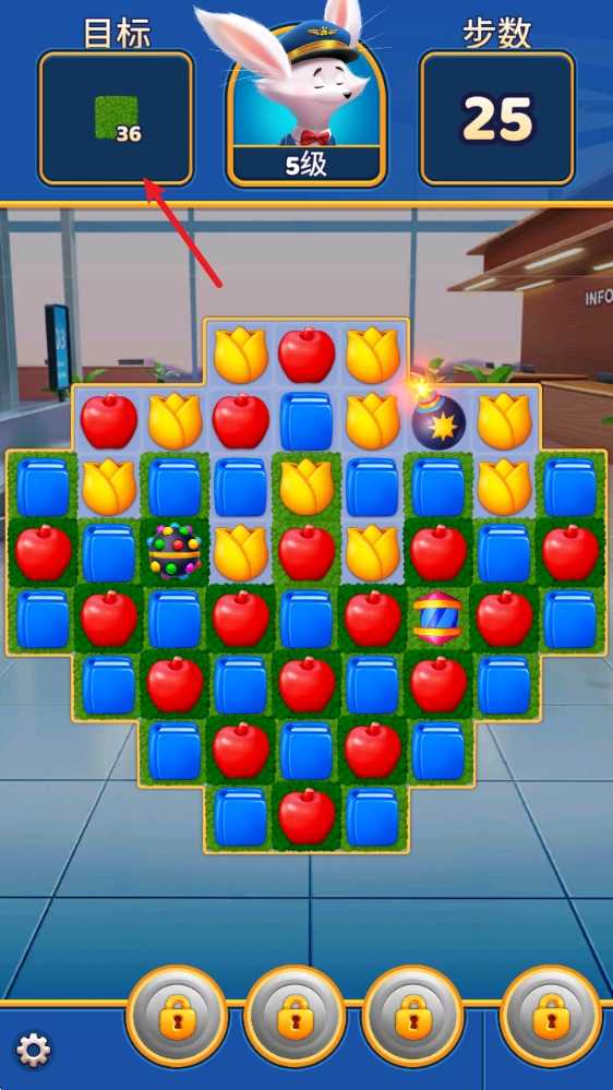 1、游戏开始后,在上方可以看到自己的目标以及剩余步数。