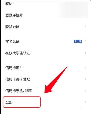 4、在个人资料选项列表中,点击最底部“全部”选项。
