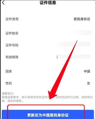 6、刷新页面后,点击“更新后为中国居民身份证”选项。
