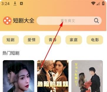 1、点击搜索栏,输入你想看的短剧名称;