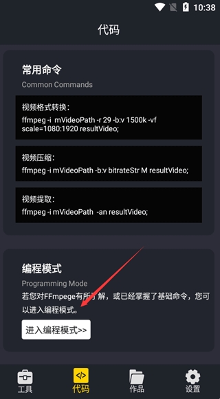 3、进入编程模式后,用户可以使用代码编辑转换视频,让用户效率更快;
