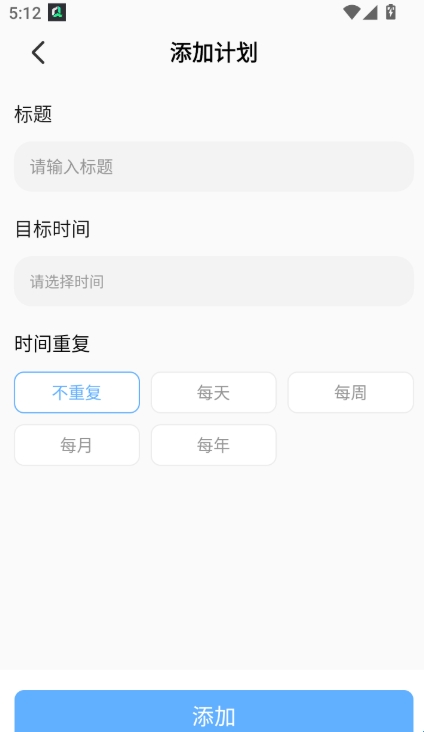 5、最后在“添加计划”页面,输入标题和选择时间即可点击底部的“添加”按钮即可完成;