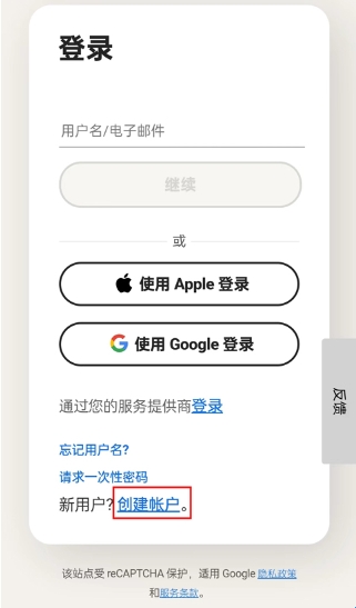 2、然后会进入到登录页面,在登录页面的下方找到【创建账户】;