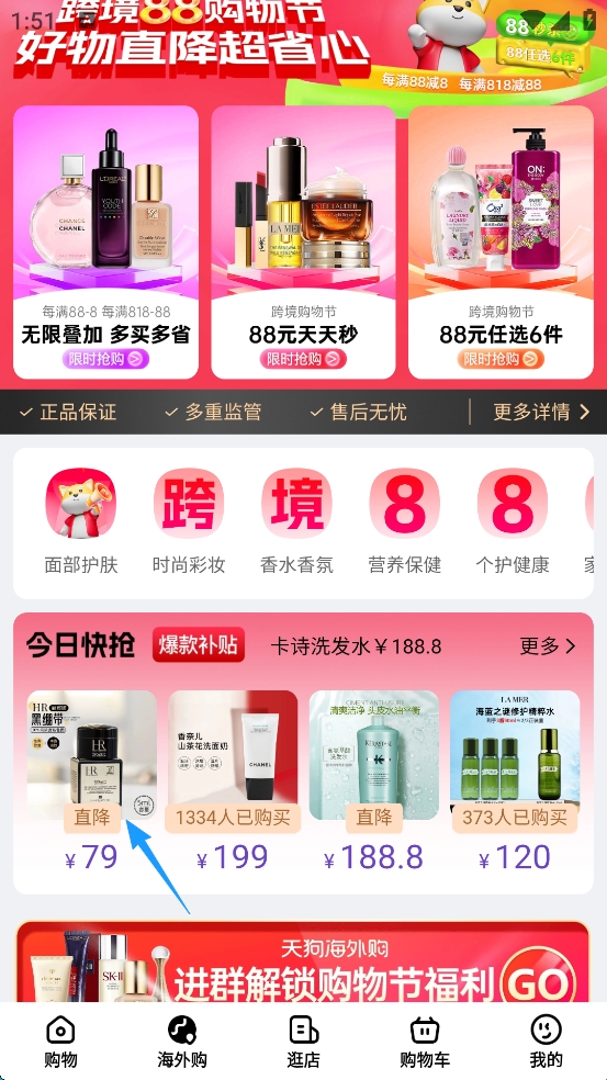 1、点击屏幕下方的“海外购”。