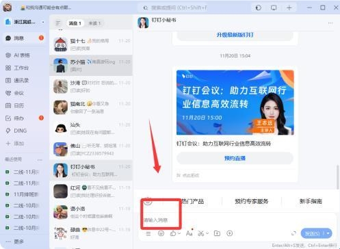 2、需要联系同事时,在消息页面点击加号选择ding功能,输入文字或录制语音,信息会以电话或短信方式送达对方,确保重要通知被及时接收。