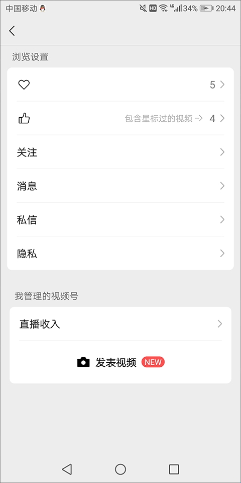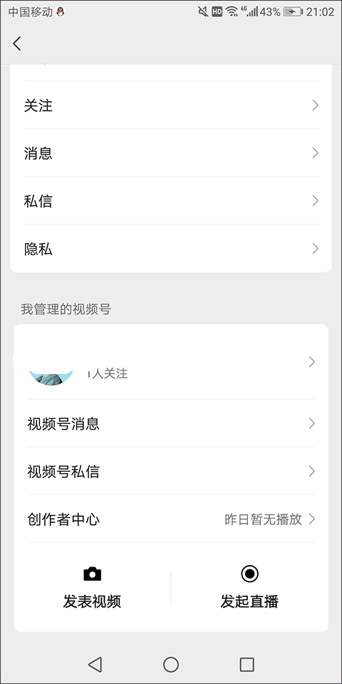 2、然后,在视频号设置界面找到并点击“发起直播”选项;