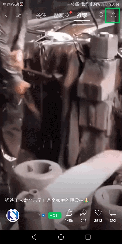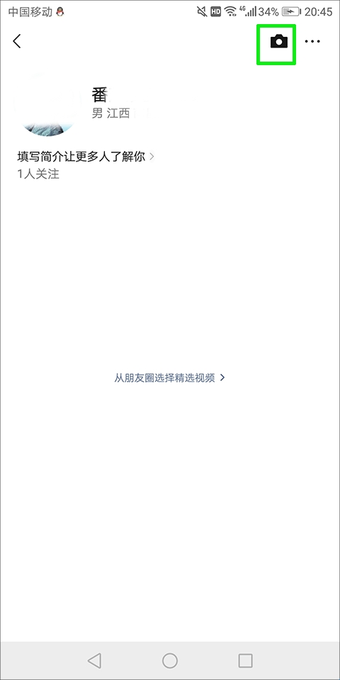 4、接着在个人界面中找到并点击右上角的绿色方框内的功能按钮;