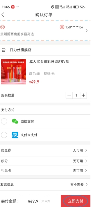 6、点击屏幕右下方的“立即支付”,就完成了商品的购买。