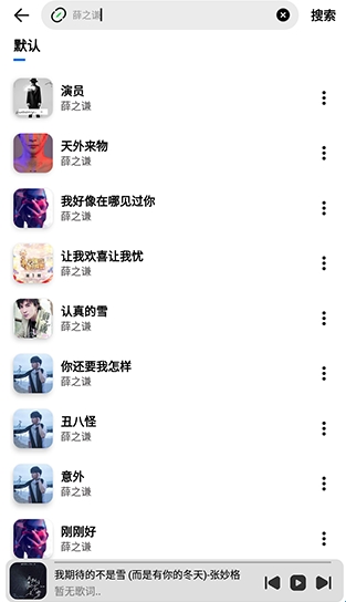 2、可通过歌曲/歌单/歌词/歌手进行搜索,如“薛之谦”