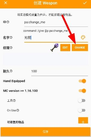 4、选择好物品后进入编辑界面,那个id不用改,名字可以自己随便输入然后点击字多的那个按钮;