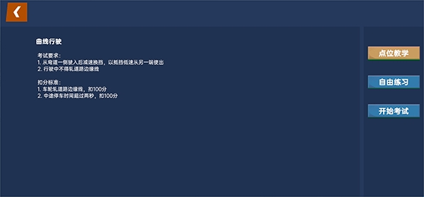 2、以科目二为例,在这里您可以练习曲线行驶、直角转弯、坡道起步等所有项目,您可以针对自己的弱势进行练习;