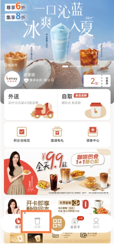 1、打开贝瑞咖啡App,点击点单
