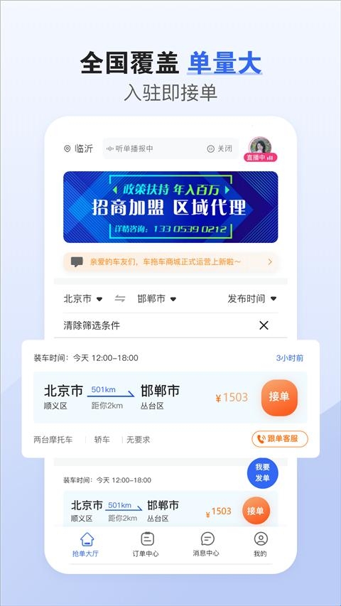 作为一款专为拖车司机设计的线上接单工具,车拖车司机版致力于提供便捷高效的接单体验。平台汇聚了全国各地的实时订单资源,司机可根据订单单价、距离等因素自由筛选,灵活选择接单任务。