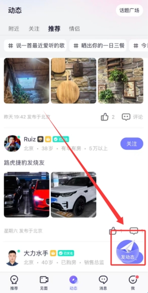 3、在动态板块能够自主创作并发布包含图文或视频内容的个人状态更新,与平台其他成员进行分享与交流。
