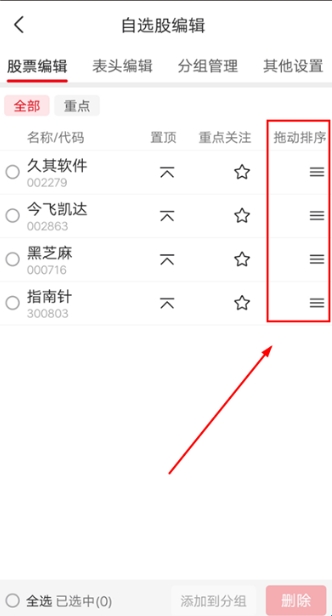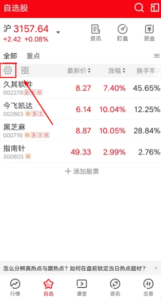 4、对于【自选股】页面内的股票排序,用户可点击页面内的齿轮图标,进行更改;
