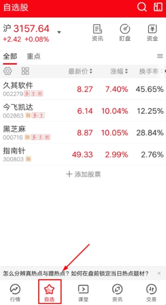指南针股票app添加自选股教程