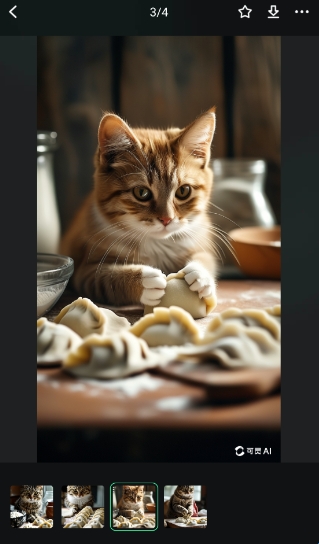 1、在AI图片创作描述框中输入提示词,例如:“一只猫咪在厨房包饺子”。