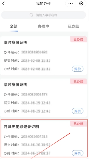 5、成功提交后点击“我的办件”进入办件详情。若仍在办理中,将仅显示办件信息。