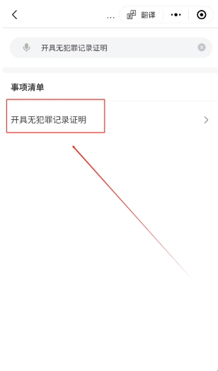 2、如果功能栏没有可以在上方搜索栏搜索“开具无犯罪证明”进入办理界面
