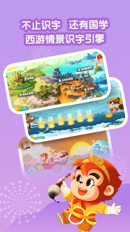 2、以西游记为故事背景、15大场景、120多个识字游戏、1200个识字动画。