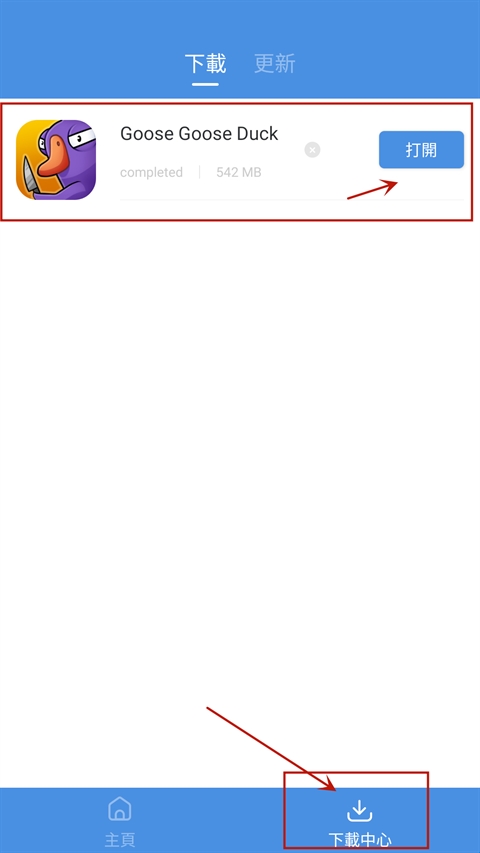 5、下载完成后,您可以在下载中心一键打开游戏,也可以在更新栏中更新手机上的游戏。