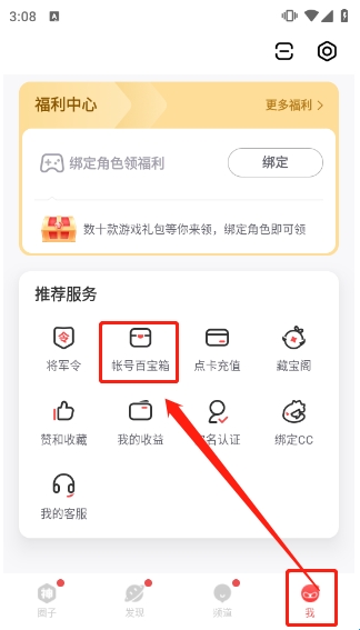 1、如图所示,点击"账号百宝箱"。
