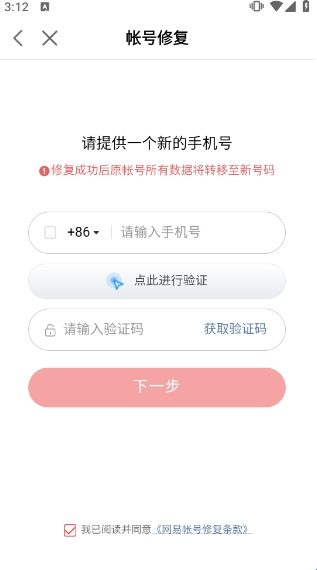 ①因修复后需要进行数据转移,为避免转移过程中出错,需要您准备一个全新、未登录过网易产品的手机号
