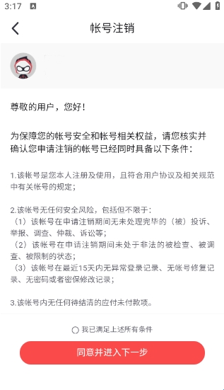 4、之后根据官方引导流程操作,即可注销网易大神账号