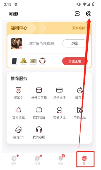 2.首先在我的页面查看上方显示的游戏,是否是我们需要启动的游戏,如果不是则点击【切换】切换绑定的游戏角色;