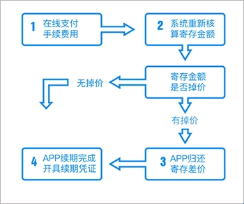 2、押呗系统智能计算是否需要归还续期差价。押呗系统植入二手数码行情大数据库,可智能计算未来的跌价趋势,若用户续期周期内,寄存产品跌价,则需提前归还寄存本金,APP内简称为“续期差价”。