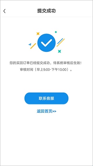 5、审核通过后,客服经理会按照您选择买回方式相应处理,审核不通过,系统会自动推送消息和短信给您。
