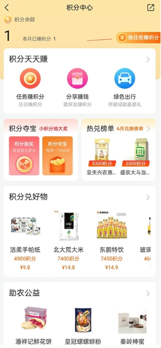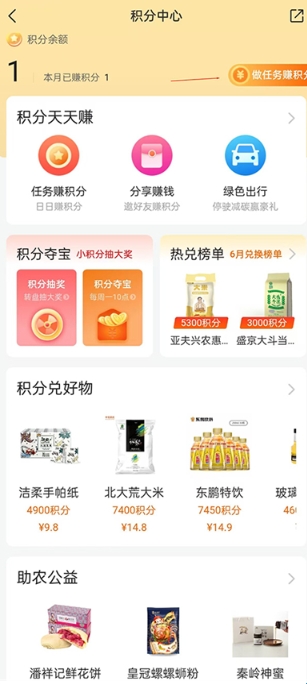 2、在这个界面可以兑换一些生活用品,然后点击做任务赚积分;