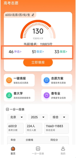 4、冲稳保:只需输入成绩即可多策略推荐高考志愿填报方案,告诉我您的爱好和分数,为您推荐合理的志愿填报表!