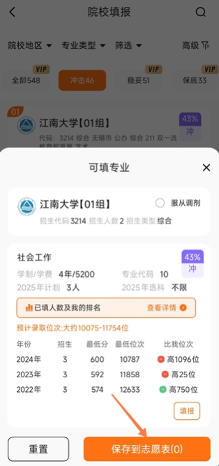 5、将你看上眼的学校保存到志愿表里可以方便你后续选择心仪的学校