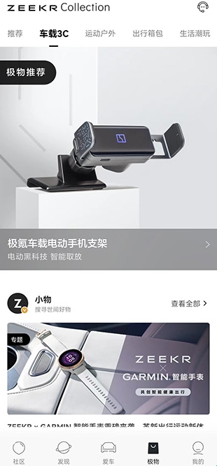 2、极物商城:ZEEKR专属周边精品,支持积分兑换与直接购买,种草拔草一气呵成