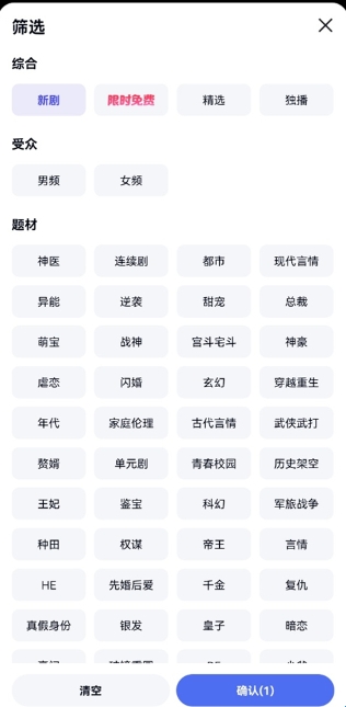 2、当然用户还可以通过筛选来选择你喜欢的题材短剧;