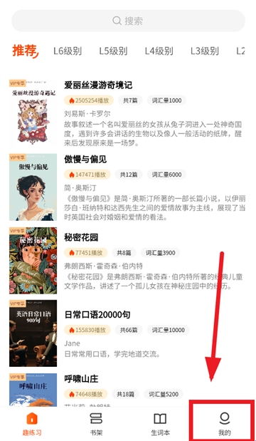 1、在本站下载安装并打开双语名著精读app,进入趣练习首页后点击我的