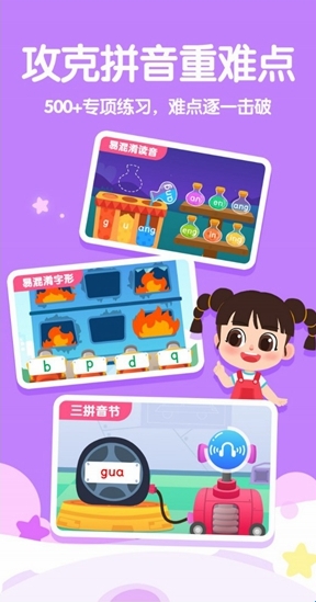 1、专门为5到7岁儿童打造的学习拼音软件;