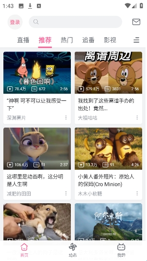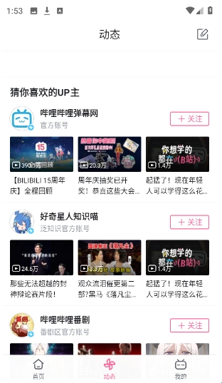 3、点击下方的“动态”,可以看到各种不同风格的up主。