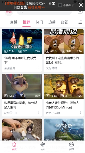 1、首先在本站下载安装哔哩哔哩精简版,进入应用首页之后,如图所示。