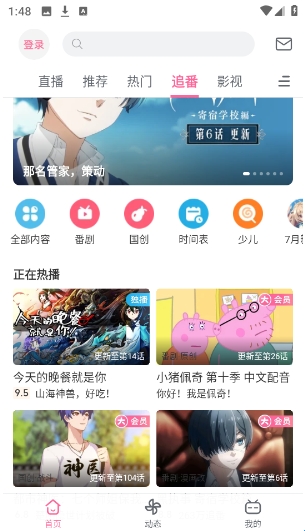 4、点击首页的“追番”,可以看到各种丰富的番剧内容。